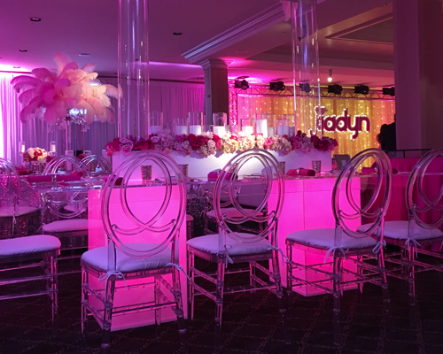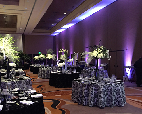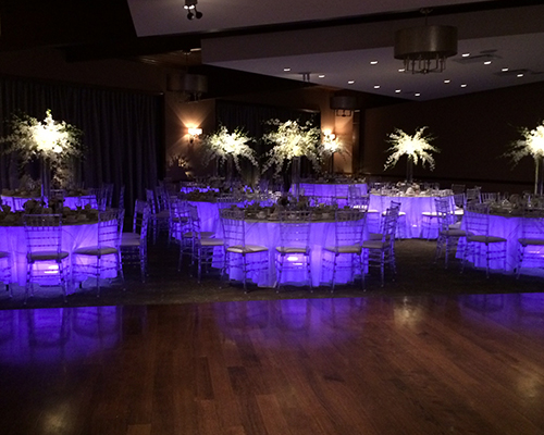 In addition to our standard options, we also offer customized lighting for special events, allowing you to choose the intensity, color and arrangement of the lighting. No matter how elaborate or unique the theme is, we will use our style and experience to create the perfect look for your event!